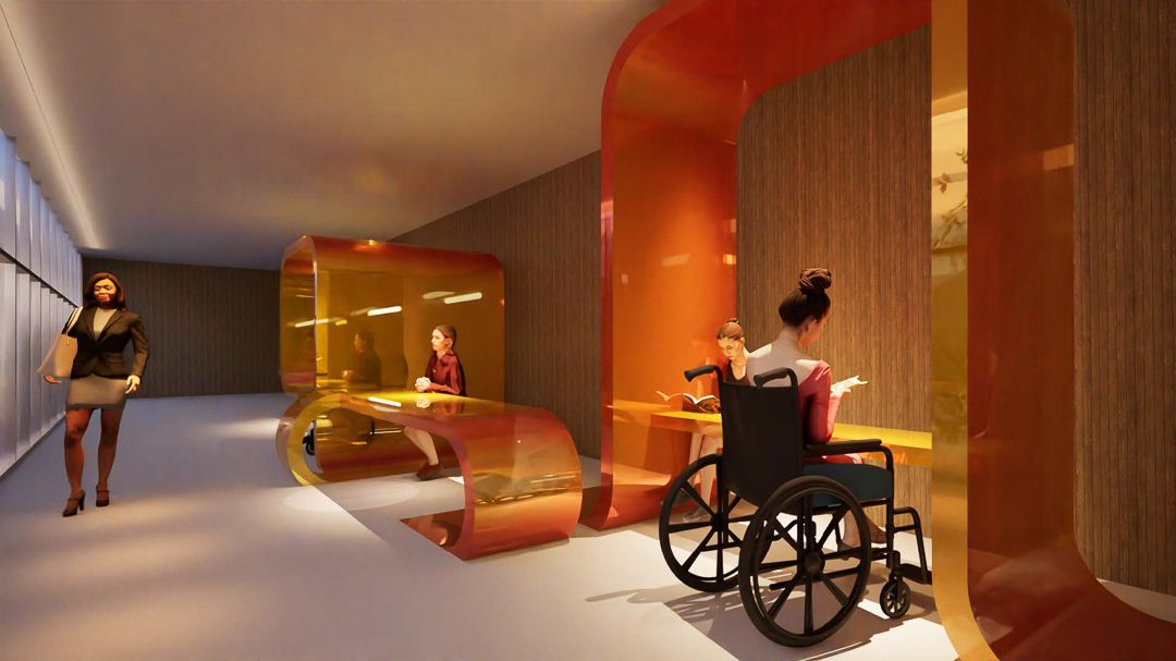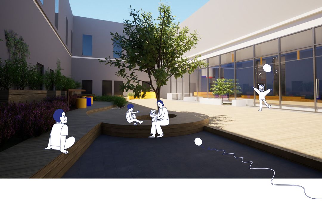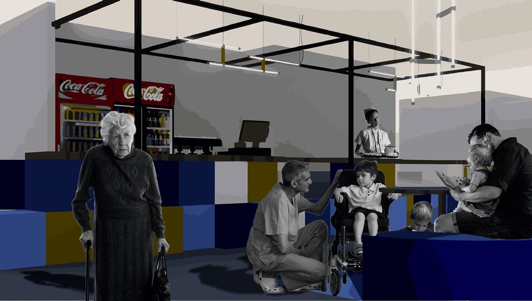 À l’entrée principale de l’hôpital, les espaces d’accueil jouent un rôle crucial dans la première impression des patients et visiteurs. Ces zones comprennent l’accueil principal, les zones de circulation, les espaces détente, la cafétéria, le patio, ainsi que les espaces d’attente pour les familles et les patients. Les étudiants ont proposé des concepts visant à rendre ces lieux plus conviviaux et fonctionnels, tout en facilitant le cheminement des patients à travers l’hôpital.