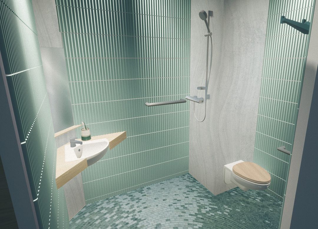 Les chambres de patients, situées dans les étages, sont des espaces où l’intimité et le confort doivent être privilégiés. Les étudiants ont exploré des solutions pour rendre ces chambres plus accueillantes, en intégrant des éléments qui favorisent le repos et la sérénité. L’objectif était de créer un environnement où les patients peuvent se sentir chez eux, malgré le cadre médical.